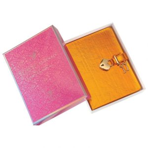 Specifikacija: dimenzija: 18,5×13,5 cm; 160 listova; 80 g/m2; rub u boji; tvrde korice; 2 označivača; lokot i dva ključa