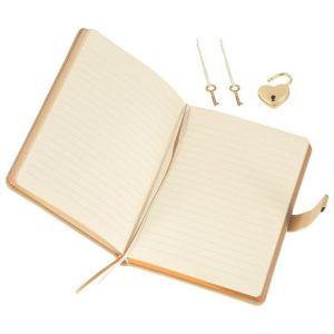 Specifikacija: dimenzija: 18,5×13,5 cm; 160 listova; 80 g/m2; rub u boji; tvrde korice; 2 označivača; lokot i dva ključa