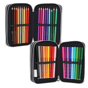 - Pernica ispunjena s kvalitetnim priborom: 18 kom drvenih bojica, 18 kom flomastera, 2 kom olovke HB, škare, ljepilo, gumica, šiljilo, ravnaloi