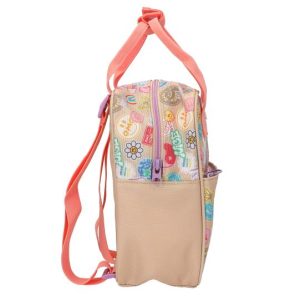 - Mali TOP Model ruksak u sjajnoj bež i koraljnoj boji ima odličan dvostruki motiv modela na ravnom prednjem džepu i šarene printeve po cijeloj dužini